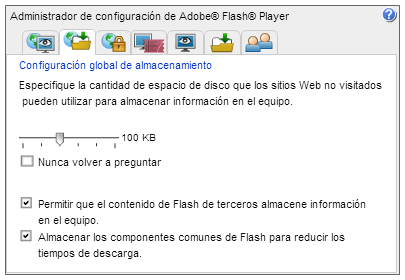 Es cierto que desde el mismo navegador web no se pueden configurar directamente los parámetros relativos a Flash, pero Adobe ofrece un centro de control específico desde dónde se podrás ajustar bastantes parámetros como el almacenamiento de cookies y archivos temporales, el acceso a cámara web y micrófono, etc.