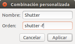 Al hacerlo, te aparecerá una ventana emergente desde donde podrás añadir una combinación de teclado y darle un nombre para reconocerla. En el caso de Shutter, la combinación es shutter -f, y como nombre puedes poner simplemente Shutter.