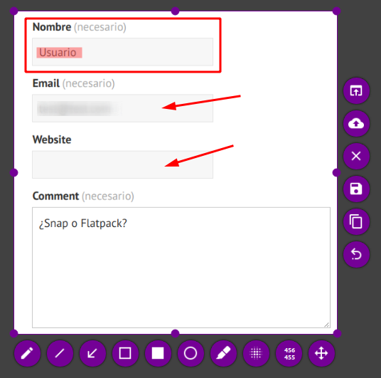 En cuanto a las opciones de edición, tienes las básicas, como resaltado, líneas, flechas, recuadros, o incluso el censurador, algo muy útil y que también podemos ver en Shutter. Lo que si que he echado en falta es la posibilidad de añadir texto dentro de la captura (esperemos que lo añadan en posteriores versiones).
