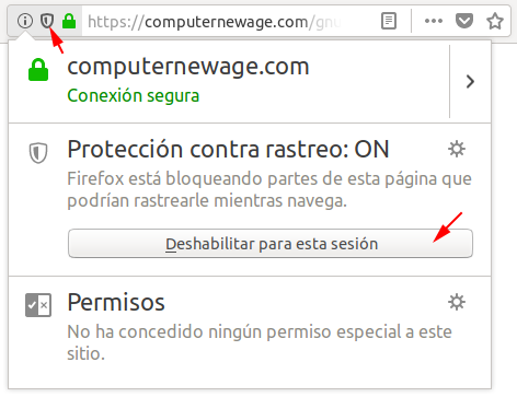 Sin embargo, una de las cosas que suele bloquear es el contenido embedido en webs pero que proviene de sitios externos. Esto suelen ser, por ejemplo, tweets embedidos, o vídeos de Youtube (esta ultima opción no suele dar problemas, a no ser que modifiques la configuración del filtrado para que se base en la lisa más estricta). Delante de esto, puedes probar de deshabilitar ese mecanismo de filtrado de Firefox, aunque únicamente para el sitio que está dando problemas.