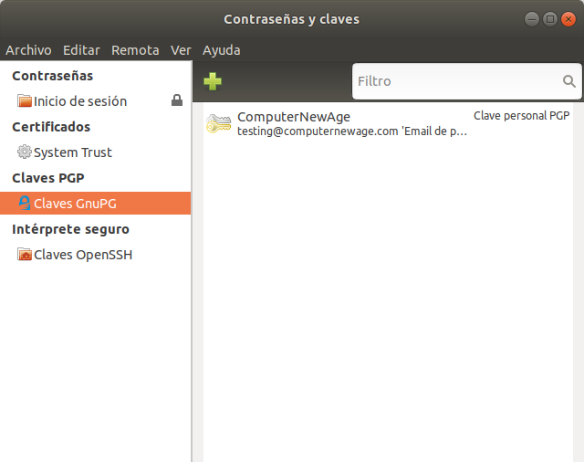 Suponiendo que estás en un entorno GNOME, lo más probable es que Seahorse ya venga instalado por defecto en tu sistema. En caso contrario, en la primera guía sobre Seahorse indico como instalarlo.