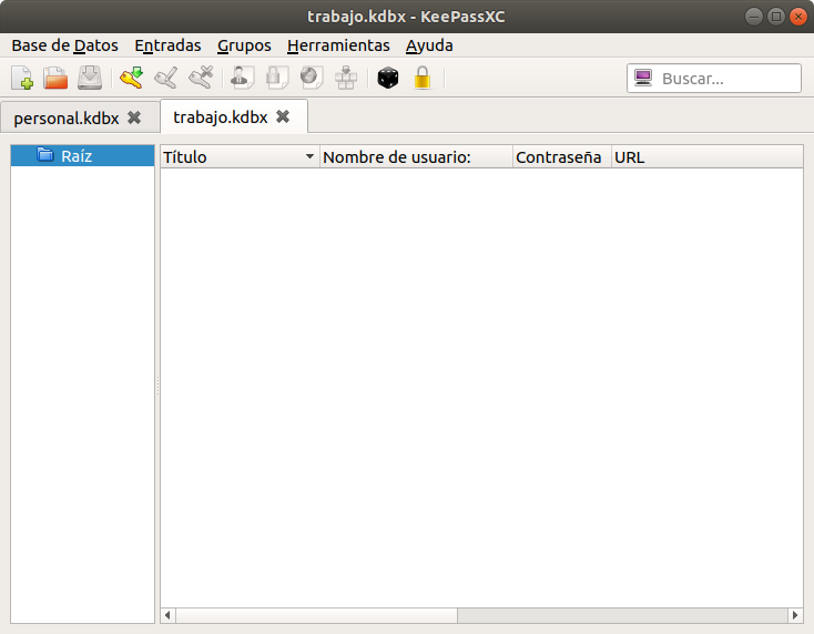 Con esto ya accederás directamente a la ventana principal de KeePassXC, donde podrás visualizar las diferentes entradas que hayas creado previamente.